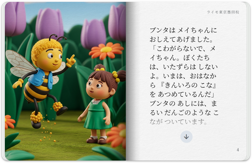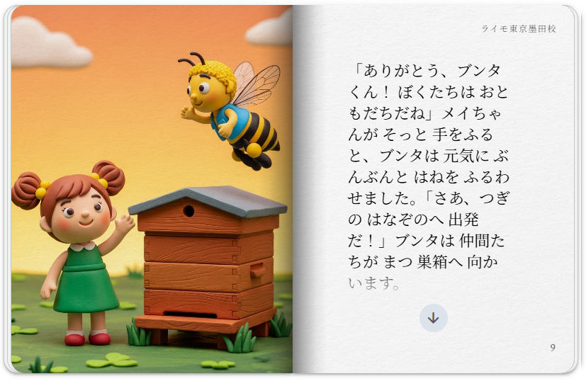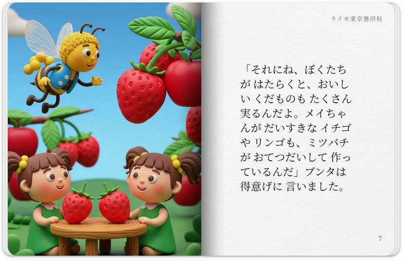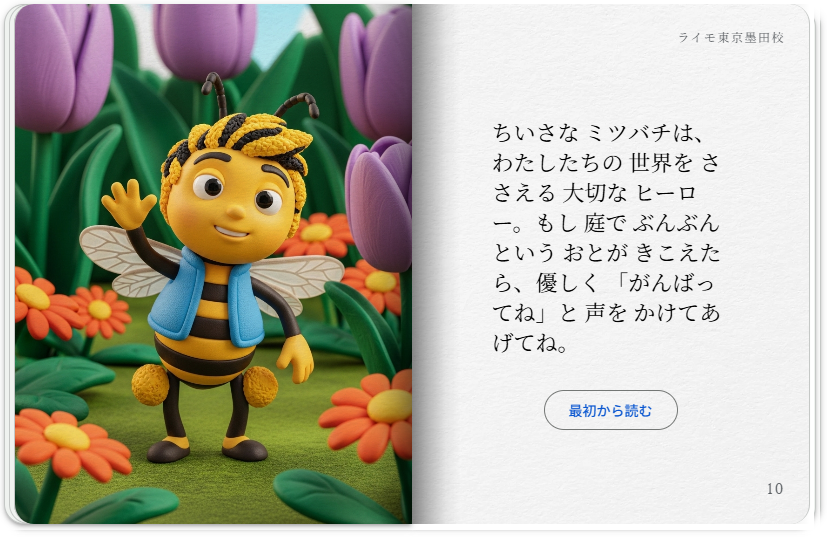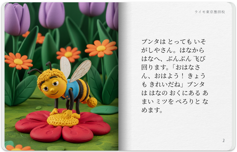 クレイアニメ風のアートスタイルで、親しみやすいミツバチをテーマに、ミツバチが地球にとってどれほど役立っているかについての storybook を作成し、子どもたちがミツバチを怖がらなくなるようにしてください。